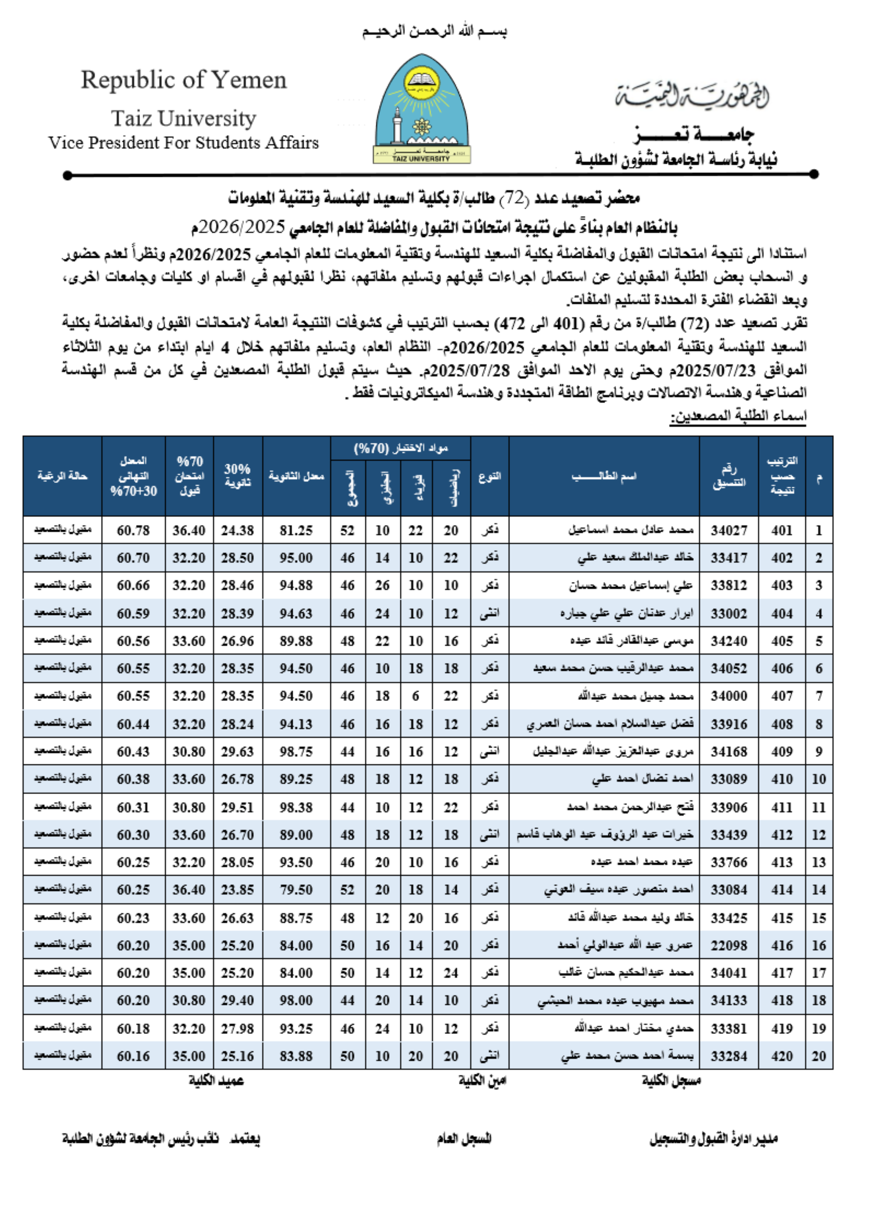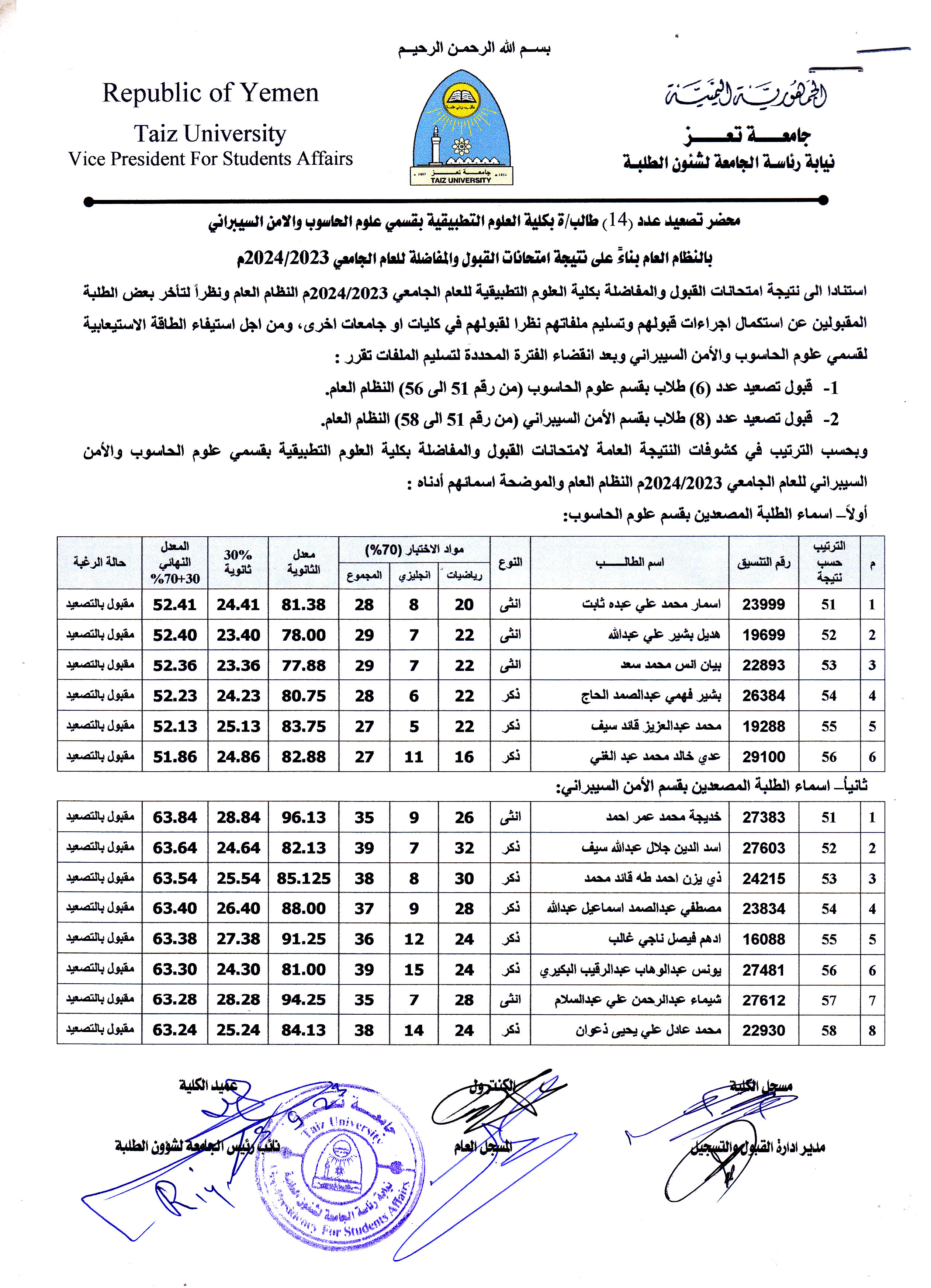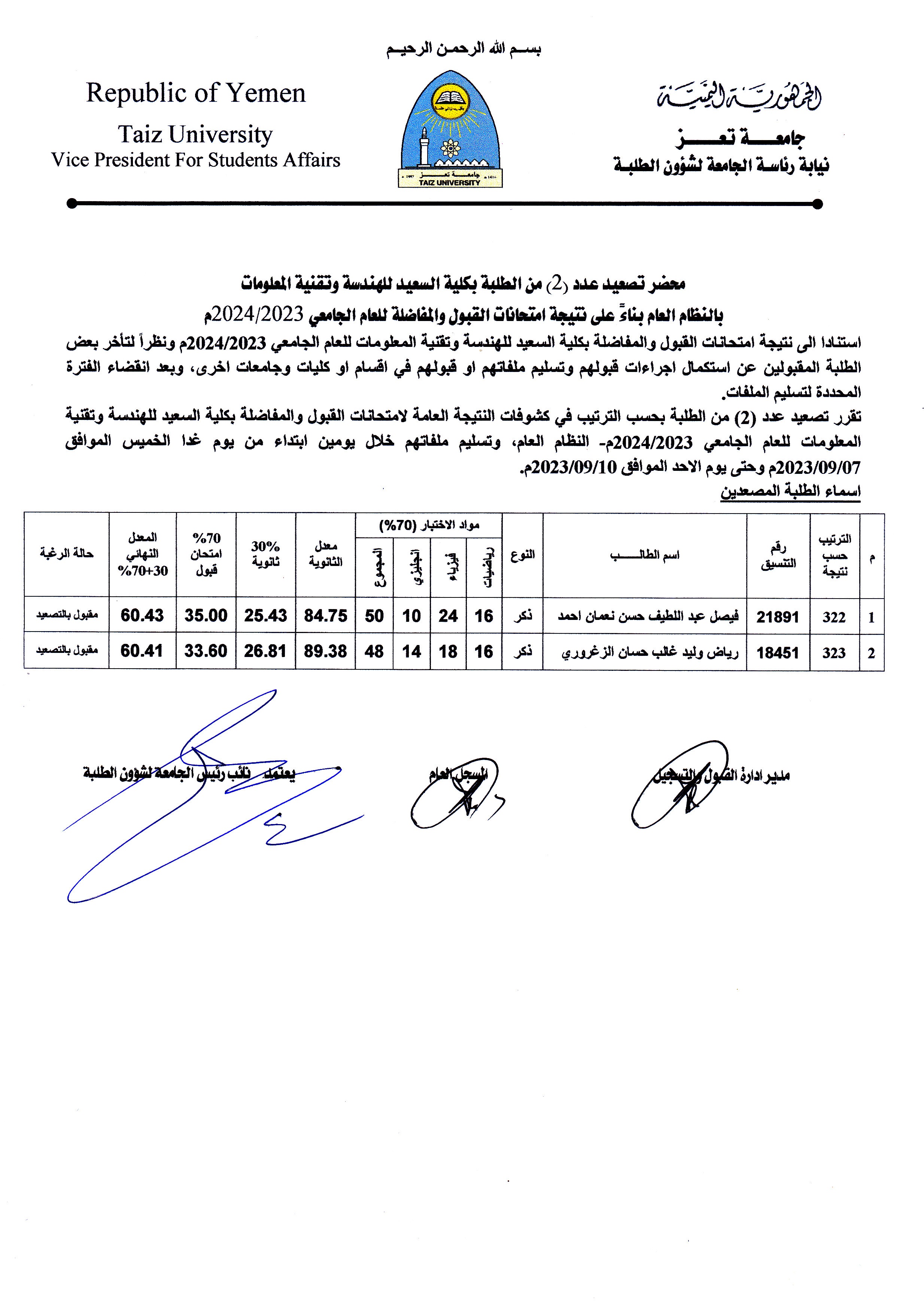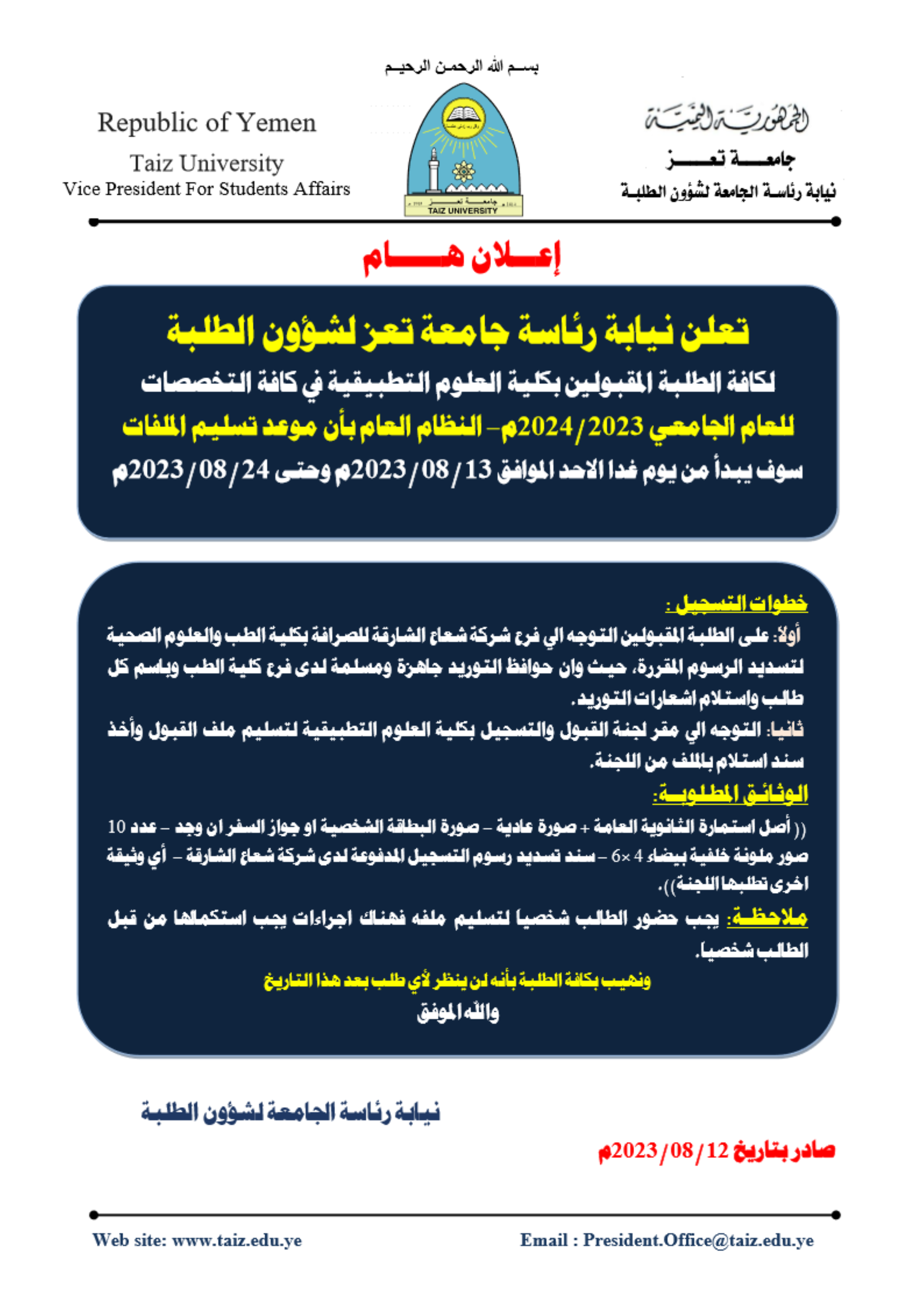 القبول والتسجيل