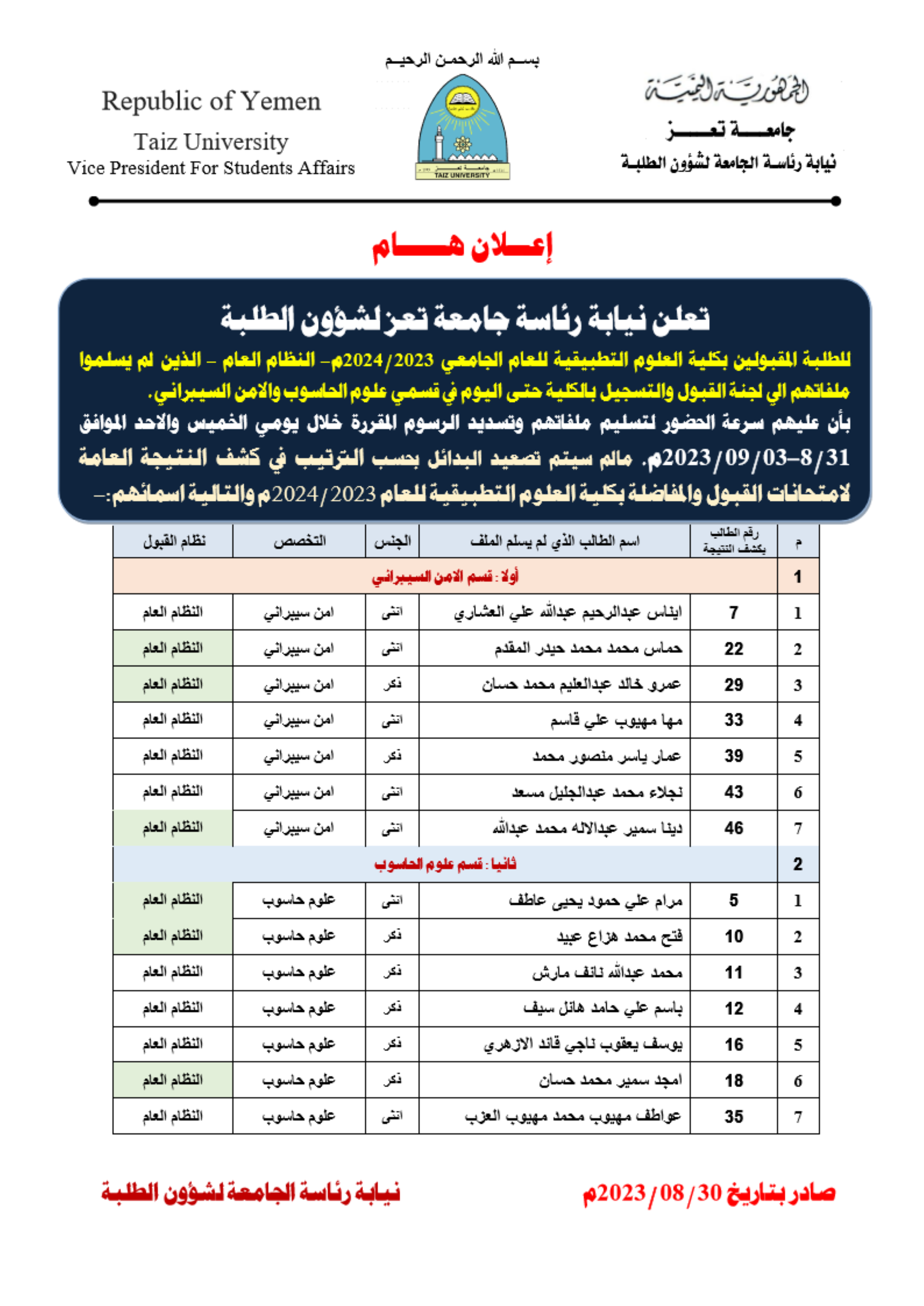ادارة الشئون الاكاديمية